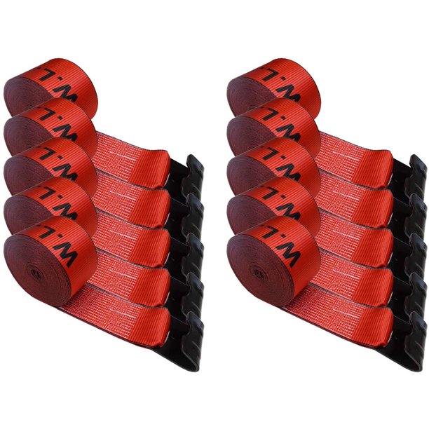 10 Pack 4 X 30 Winch Straps W Flat Hooks Flatbed Truck Trailer Tie Down Strap Red Wll 5400 Lbs Walmart Com